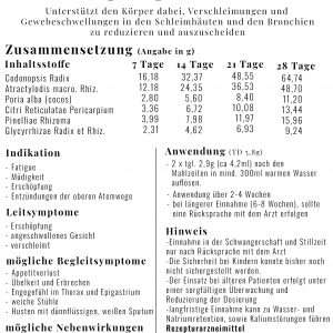Unterstützt den Körper dabei, Verschleimungen und Gewebeschwellungen in den Schleimhäuten und den Bronchien zu reduzieren und auszuscheiden.
