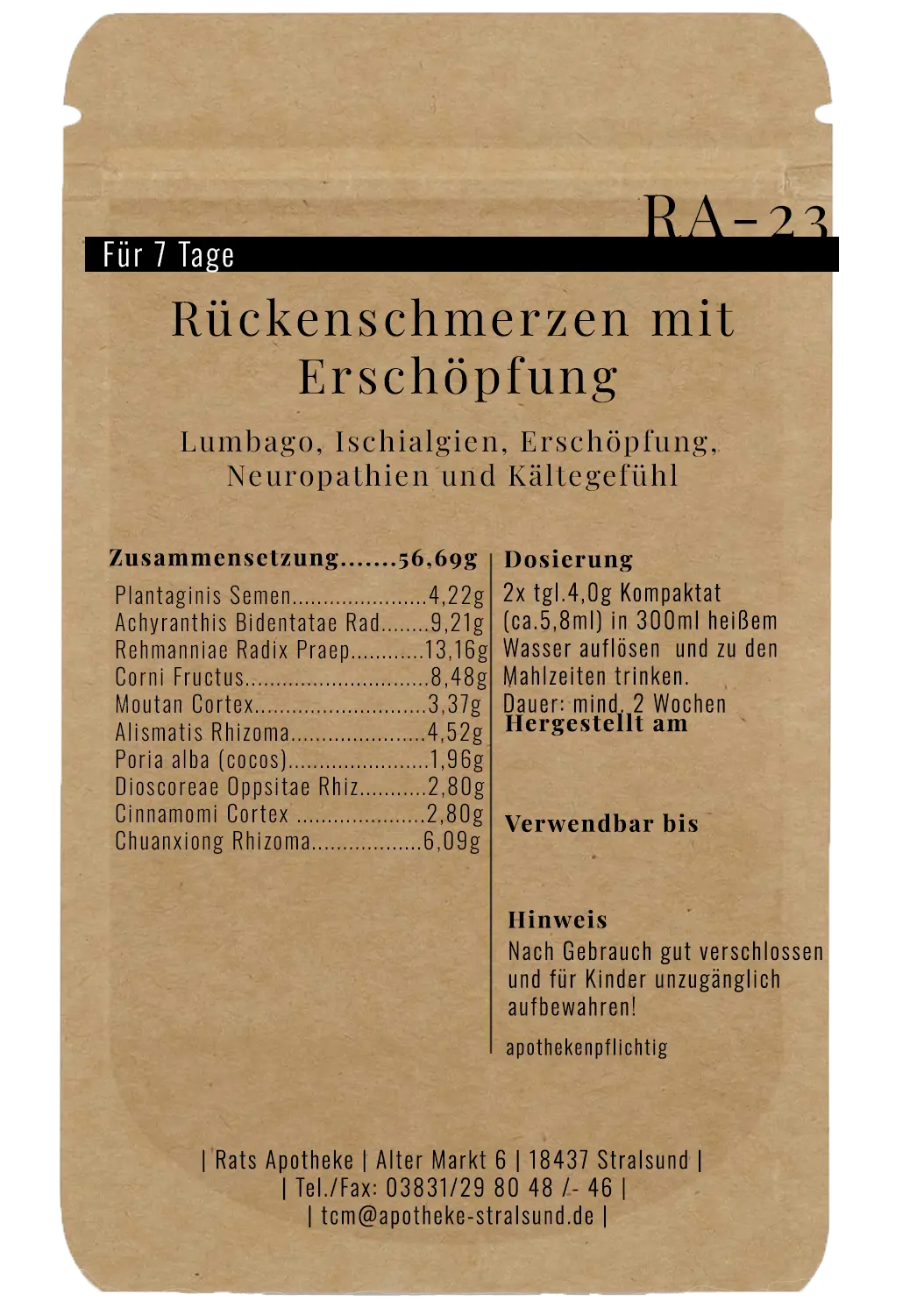 Dieses Produkt ist apothekenpflichtig und wird in der Apotheke direkt nach Bestelleingang für Sie hergestellt und verschickt.
